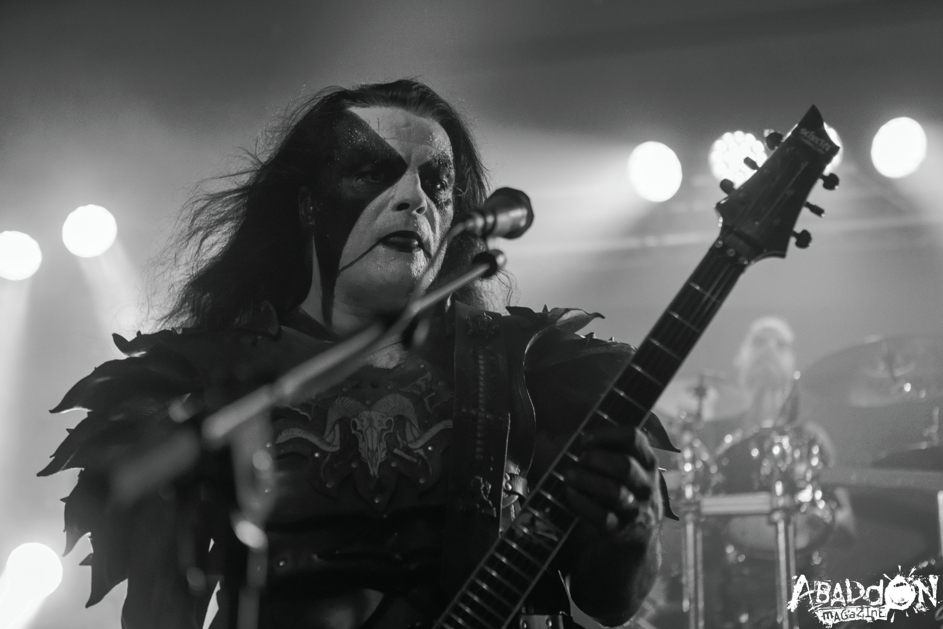 Concert started right on time and every time when this organisation welcomed someone it’s the same story so the audience knew what to expect and we all came on time. Abbath had no support band, there was something called DJ and I honestly didn’t notice the difference between regular music that goes before any other concert and this one. First disappointment was that I didn’t see any scenography. Everything I followed about his show, previous months, everything the audience in Belgrade waited for, big axes, fire, Abbath’s flag that falls in the beginning… None of it was brought up to stage. Not even the logo of a band… Only at the end of the concert I noticed a pale picture of ravens behind drummers’ backs and that’s it, with a blue stage light no one saw that. His mask with horns he had for a few songs was obviously enough for this audience. I mean, I understand who cares about Belgrade, half full Americana hall, festivals are more important, right?