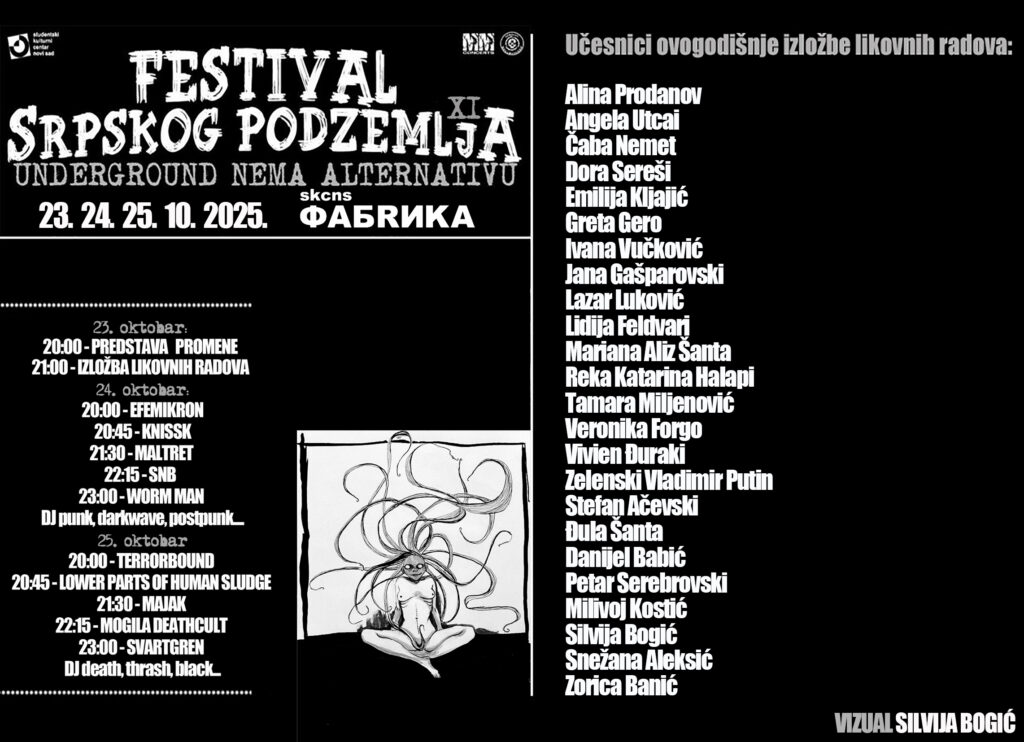 The running order for the 11th Serbian Underground Festival has been officially announced. The festival will take place on October 23rd, 24th, and 25th in Novi Sad, bringing together some of the most powerful names from the regional underground scene. Get ready for three intense days of pure underground energy.